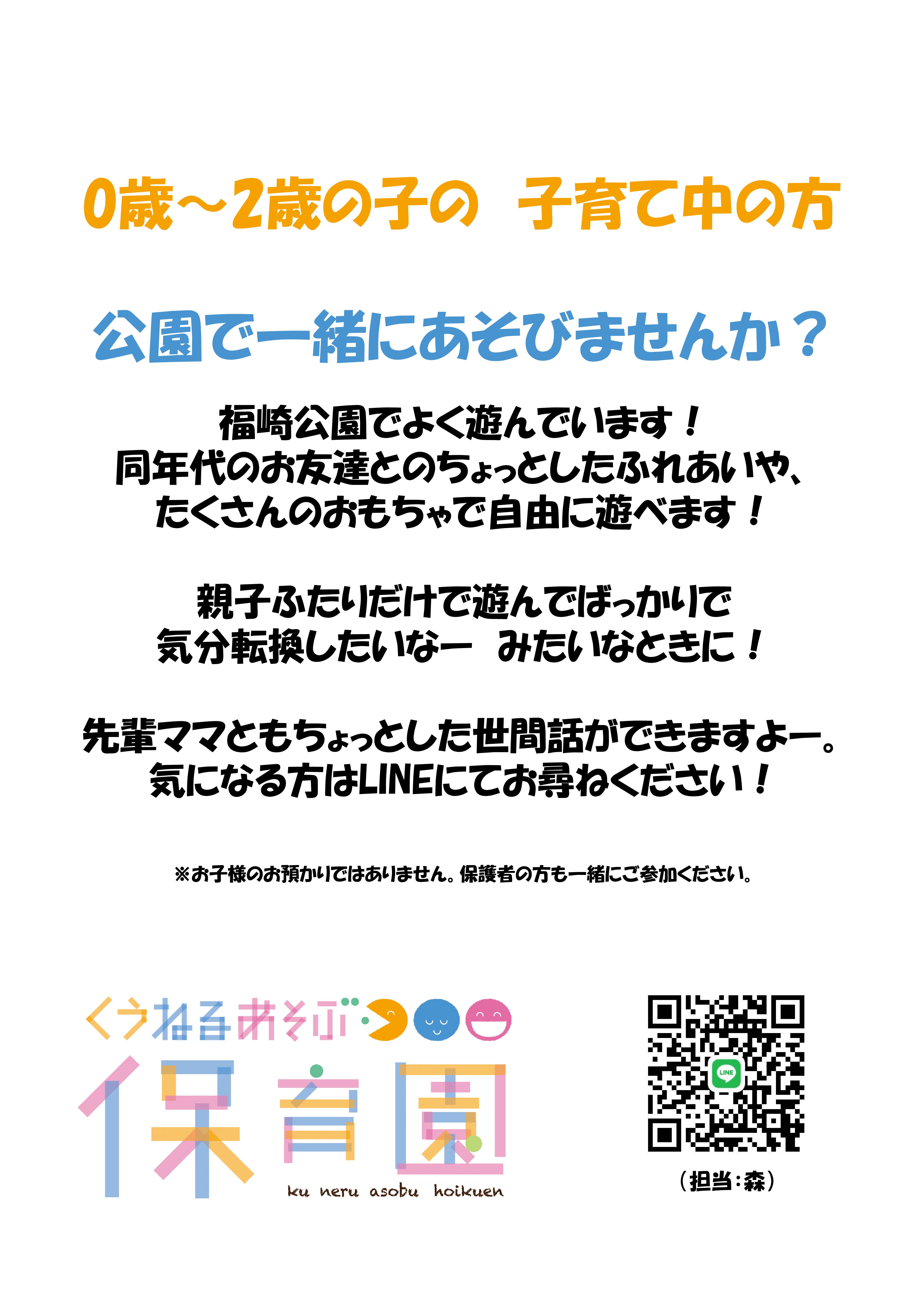 近くにはかもめ広場、福崎公園、荒津公園と地域のあそび場が複数あり、外あそびを思う存分楽しめます。